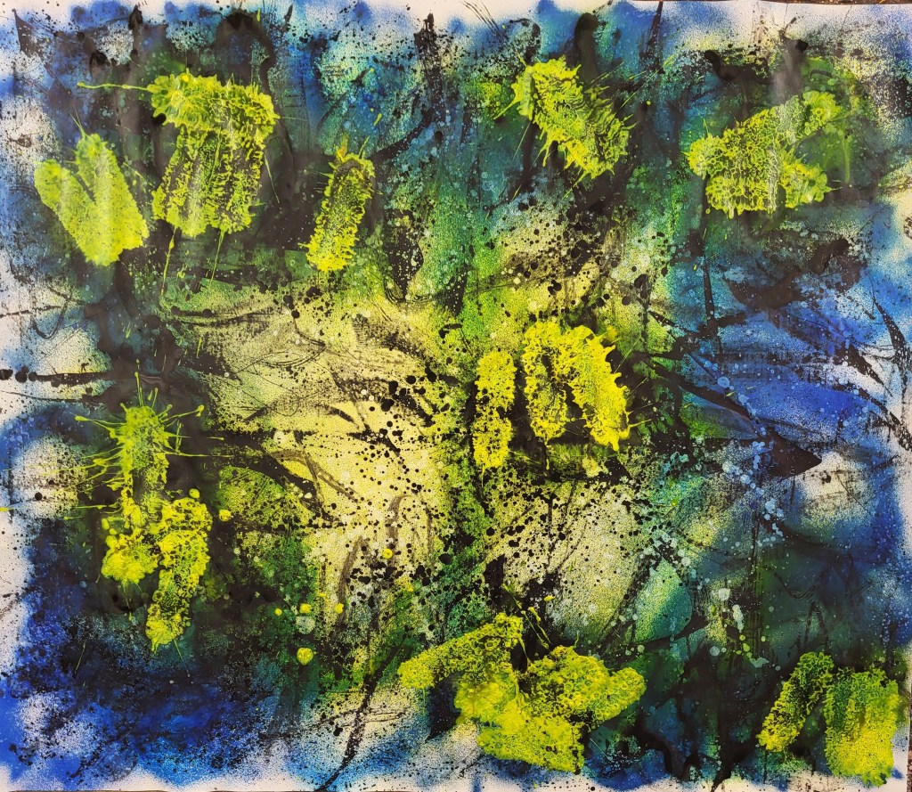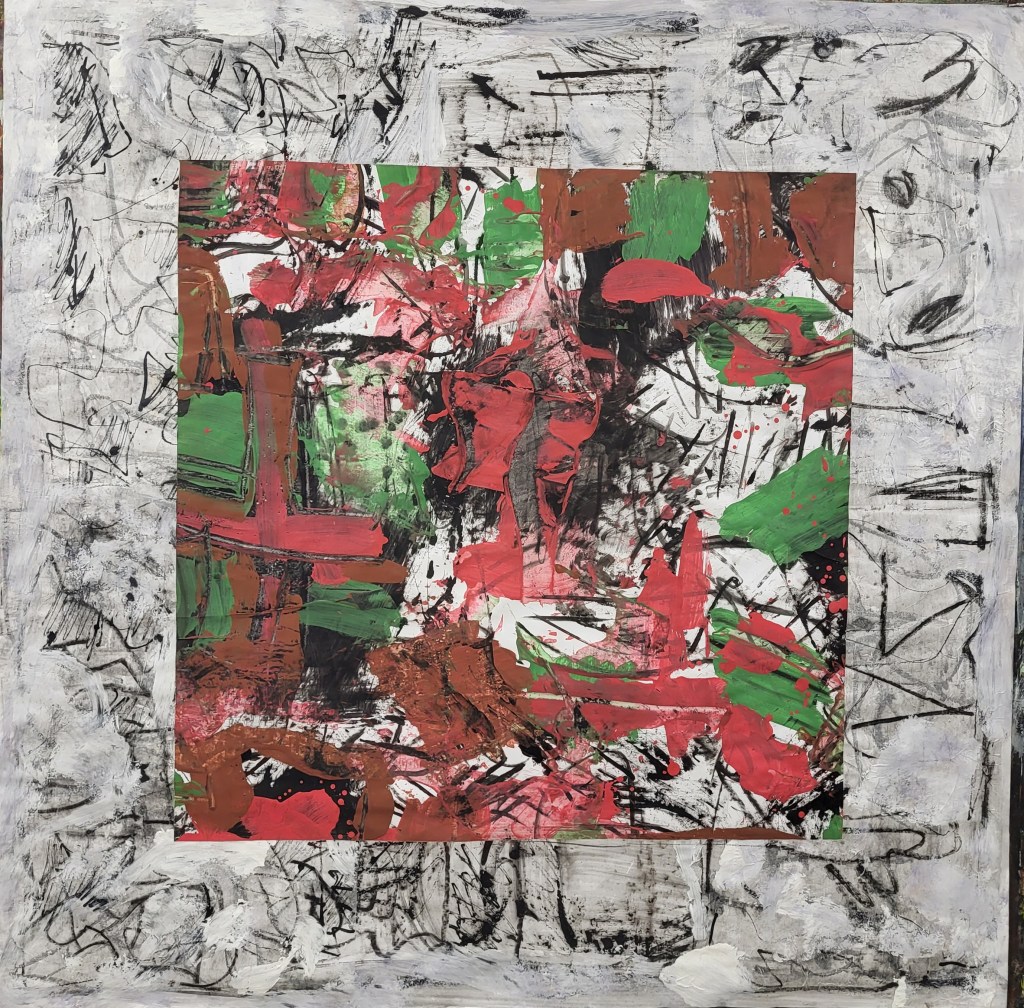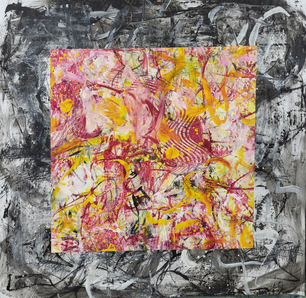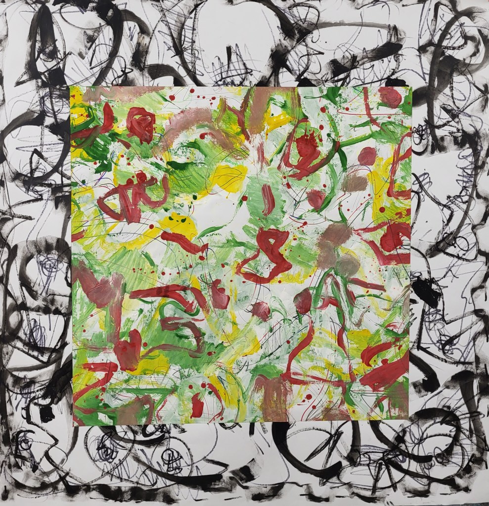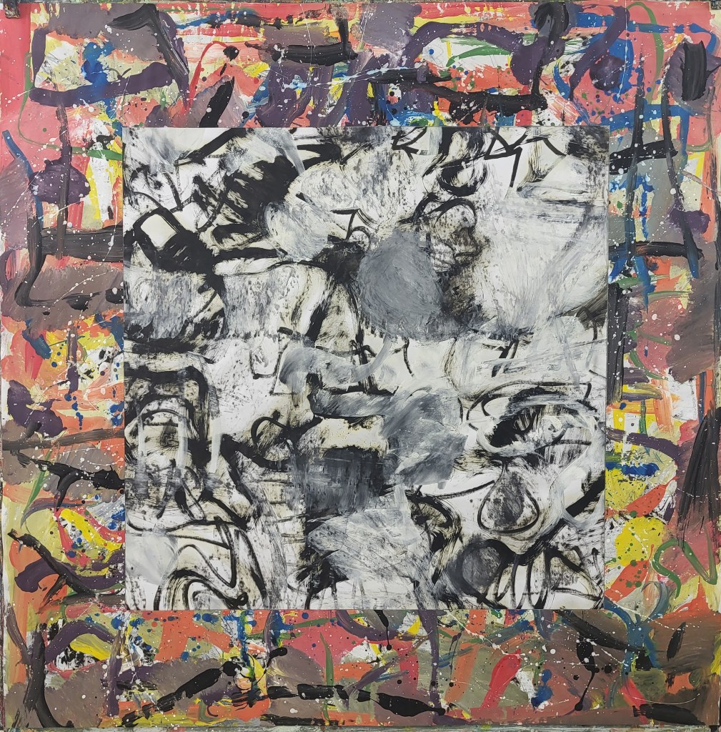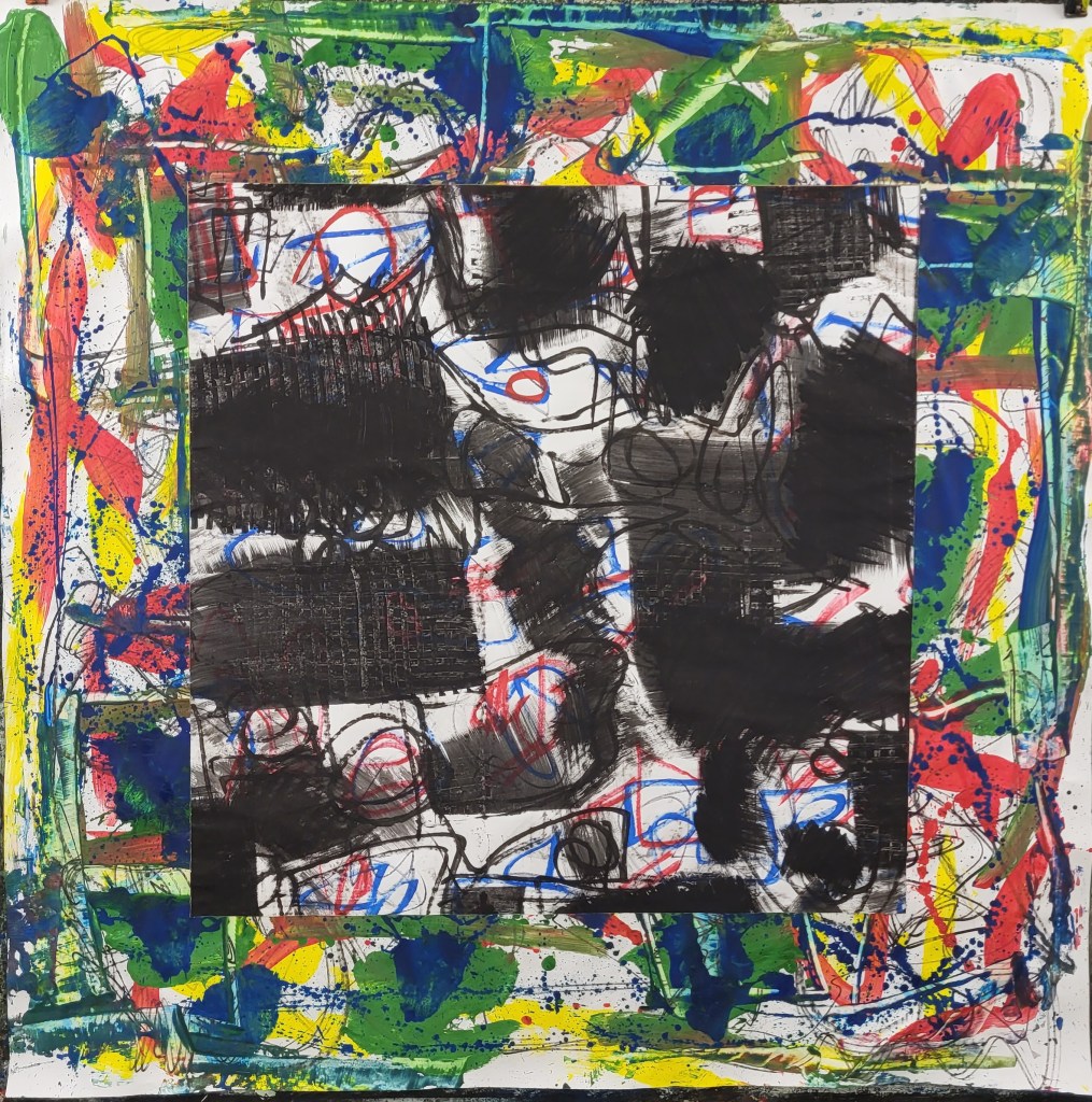 Avec découpe 150x150cm Le format carré est l’occasion d’une égalité entre le haut et le bas, avec trop de ciel, trop de sol, pour donner ma position, marquer ma présence et ne pas pouvoir tricher..